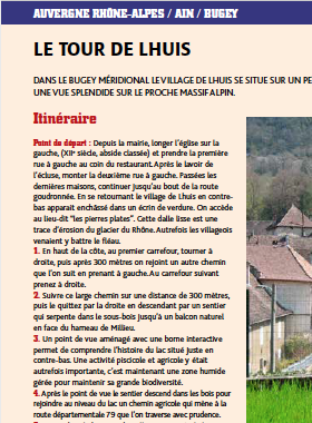 Dans le Bugey méridional le village de Lhuis se situe sur un petit plateau en balcon au-dessus de la vallée du Rhône. Sa situation offre une vue splendide sur le proche massif alpin.
