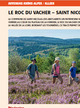 La commune de Saint-Nicolas-des-Biefs abrite un patrimoine naturel et culturel remarquable, avec ses paysages variés et son musée du verrier. Au cœur du Plateau de la Verrerie, le Roc du Vacher offre un panorama époustouflant sur les Monts Alpins. Le parcours domine la vallée de la Loire. Bordant les tourbières, ce tracé permet de découvrir des lieux uniques où poussent sphaignes et droséras.