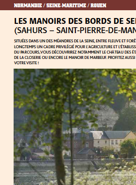 Situées dans un des méandres de la Seine, entre fleuve et forêt, les communes de Sahurs et de Saint-Pierre-de-Manneville offrent depuis longtemps un cadre privilégié pour l’agriculture et l’établissement de résidences secondaires. Le patrimoine y est partout présent ! Au fil du parcours, vous découvrirez notamment le château des étangs, propriété du frère du Général de Gaulle, le Manoir de Villers, le jardin de la Closerie ou encore le Manoir de Marbeuf. Profitez aussi de la vue sur La Bouille et traversez la Seine avec le bac pour prolonger votre visite !