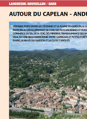 Véritable porte entre les Cévennes et la plaine du Gardon, le site d’Anduze est occupé depuis la préhistoire. Sa situation stratégique participa au développement de l’une des plus anciennes et puissantes seigneuries au Moyen Âge, favorisant des échanges prospères : commerce du sel, de la soie, des minerais, transhumance des animaux… Autour du Capélan, l’un des 4 sommets calcaires dominant la ville, est une belle randonnée entre garrigues et petites forêts, avec de beaux points de vue depuis les hauteurs, sur les Cévennes, la plaine, la vallée du Gardon et la cluse d’Anduze.